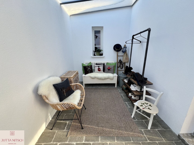 Besonders hervorzuheben ist die traumhafte Terrasse, die Ihnen einen atemberaubenden Grünblick in den liebevoll angelegten Garten bietet. Hier können Sie entspannen, die Natur genießen und unvergessliche Sommerabende mit Freunden und Familie verbringen. Ob ein gemütlicher Grillabend oder eine entspannte Auszeit mit einem guten Buch – dieser Außenbereich wird schnell zu Ihrem Lieblingsplatz.