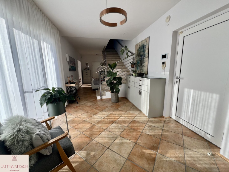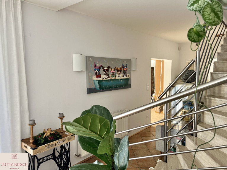Das Haus erstreckt sich über 6 lichtdurchflutete Zimmer, die Ihnen und Ihrer Familie ausreichend Platz für gemeinsame Momente und Rückzugsmöglichkeiten bieten. Jeder Raum ist sorgfältig gestaltet und zeugt von einer hohen Pflege und Wertschätzung. Die Kombination aus eleganten Fliesen und warmem Parkett sorgt für ein harmonisches Wohnambiente, das zum Wohlfühlen einlädt.
