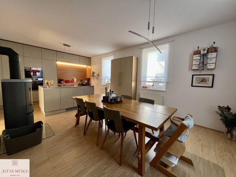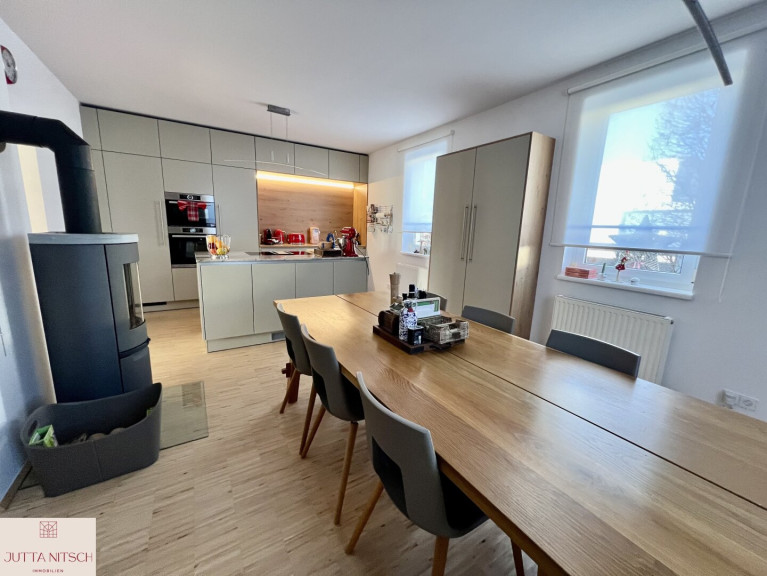 Die moderne Einbauküche ist das Herzstück des Hauses und lädt dazu ein, kulinarische Köstlichkeiten zu zaubern. Hier wird jeder Kochmoment zum Vergnügen.