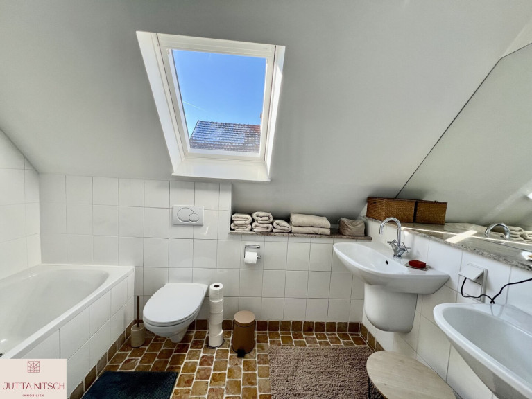Das Haus verfügt über zwei Bäder, die beide mit einem Fenster ausgestattet sind, sodass Sie Ihr tägliches Ritual in hellem und freundlichem Ambiente genießen können. Die neue Gas-Etagenheizung sorgt effizient dafür, dass Sie auch an kalten Tagen immer ein warmes Zuhause haben.