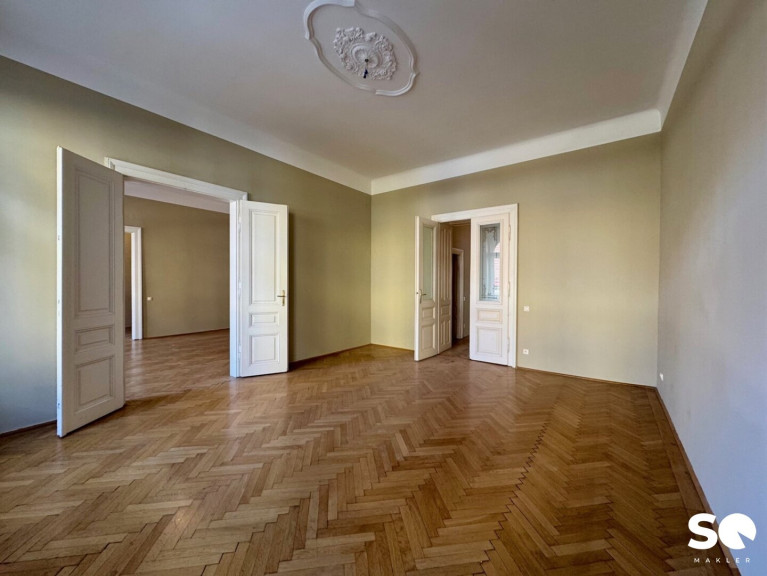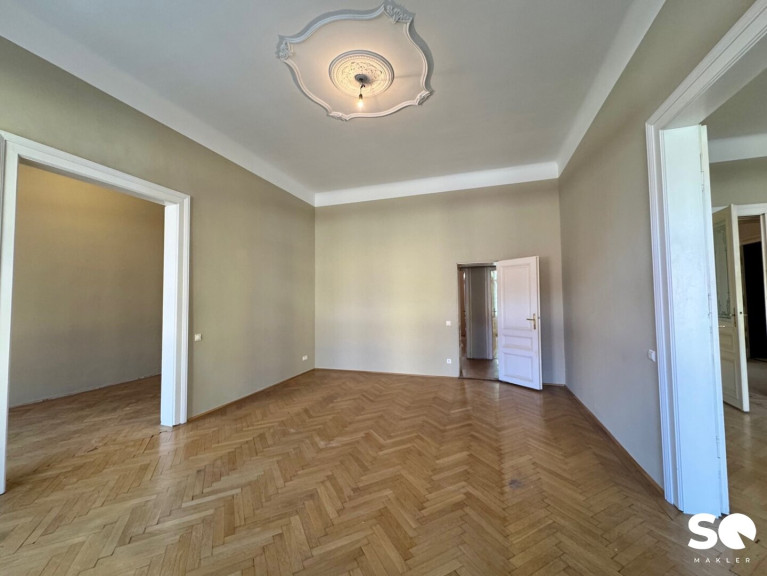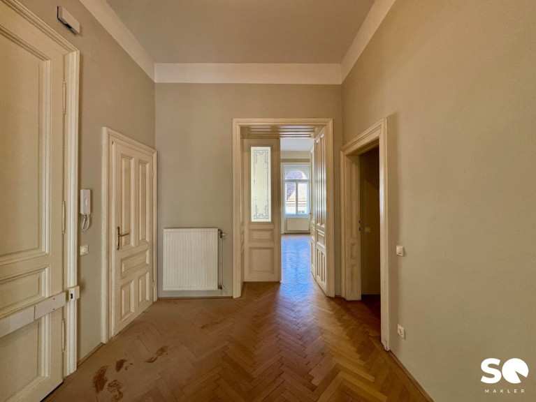 Die Wohnung befindet sich im 2. Obergeschoß in einem schönen Gründerzeithaus mit gegliederter Fassade.