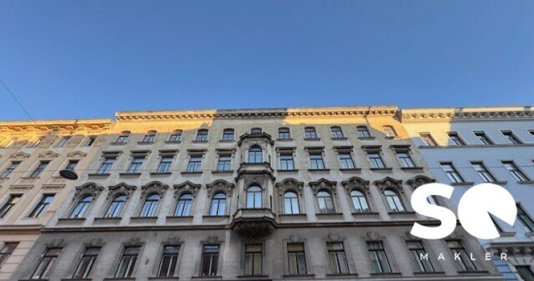 Die Wohnung befindet sich im 2. Obergeschoß in einem schönen Gründerzeithaus mit gegliederter Fassade.