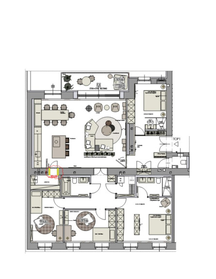 Großzügiges Wohnzimmer, ca. 51m² mit Wohnküche