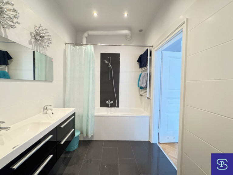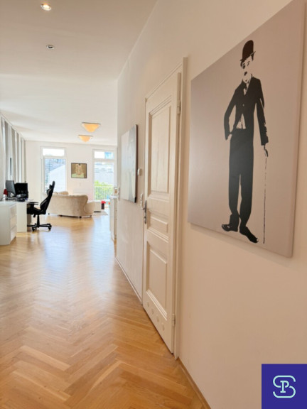 Ausstattung: Hochwertig renovierter Altbau mit Echtholz-Fischgrätparkett, Einbauküche mit Geräten, Klimaanlage, Gasetagenheizung, geschmackvolles Bad mit Doppelwaschbecken, Badewanne und WC, separate Toilette, Kunststofffenster mit Mehrfachverglasung, bodentiefe Fenster im Wohnraum, Kellerabteil, Balkon, Lift,.