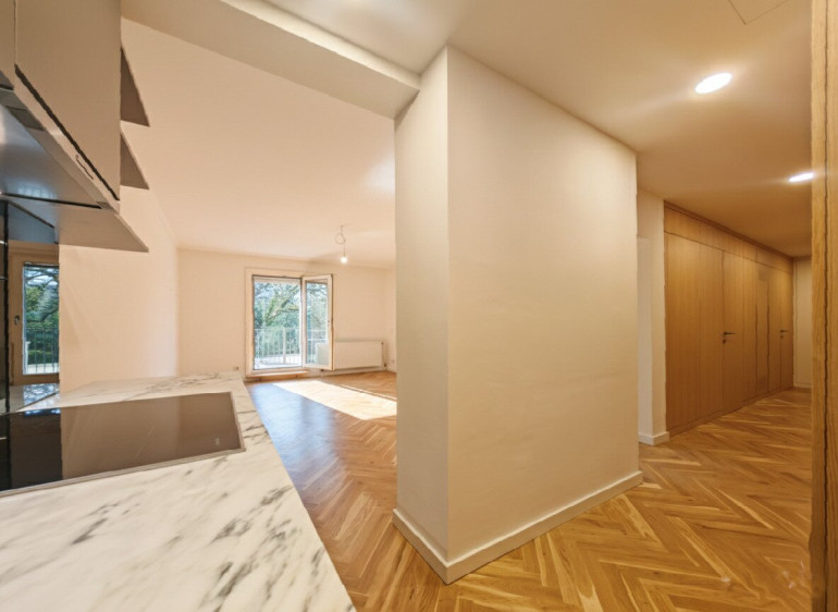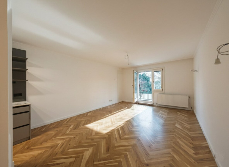 Auf einer Fläche von rund 81 m² befinden sich zwei Schlafzimmer, ein offen gestaltetes Wohnzimmer mit Übergang zum Vorzimmer und zur Küche, ein WC sowie ein Duschbad. Der großzügige Balkon bietet einen herrlichen Blick in den Botanischen Garten des Schönbrunns und stellt eine attraktive Freifläche mit ansprechender Aussicht dar.