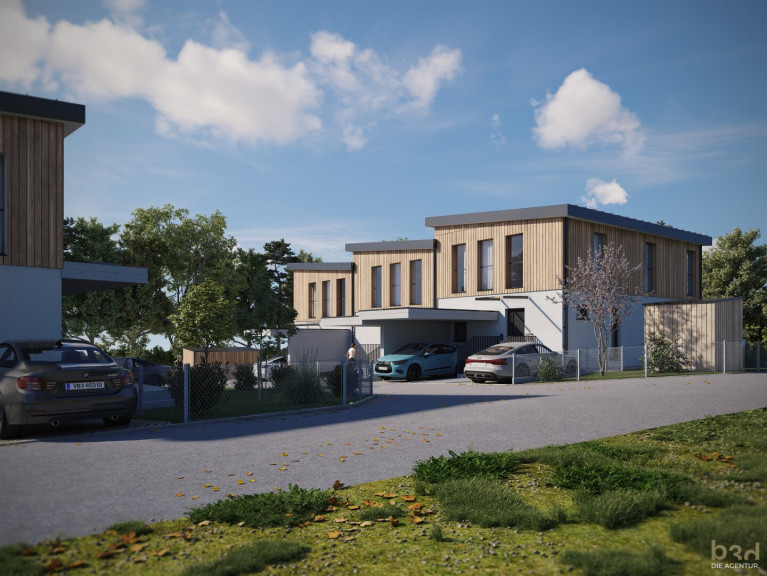 Nußdorf5. In Zell in der Gemeinde Nußdorf am Attersee errichtet die Nu5 Projekt GmbH ein Doppelhaus mit zwei und ein Reihenhaus mit drei Wohneinheiten, wahlweise in belags- oder in schlüsselfertiger Ausführung.