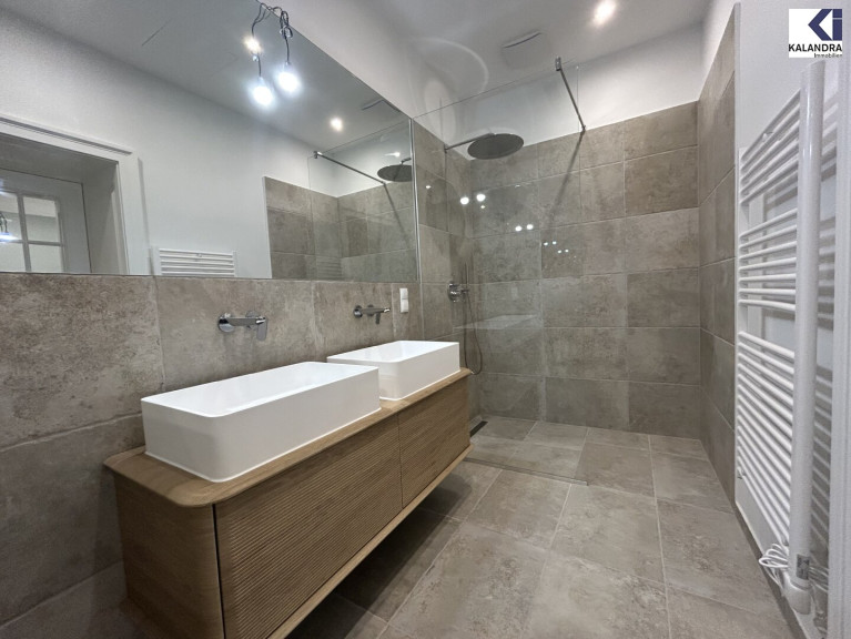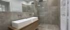 - bathrooms equipped with large-format porcelain stoneware tiles, mirrors, design washbasins and design faucets