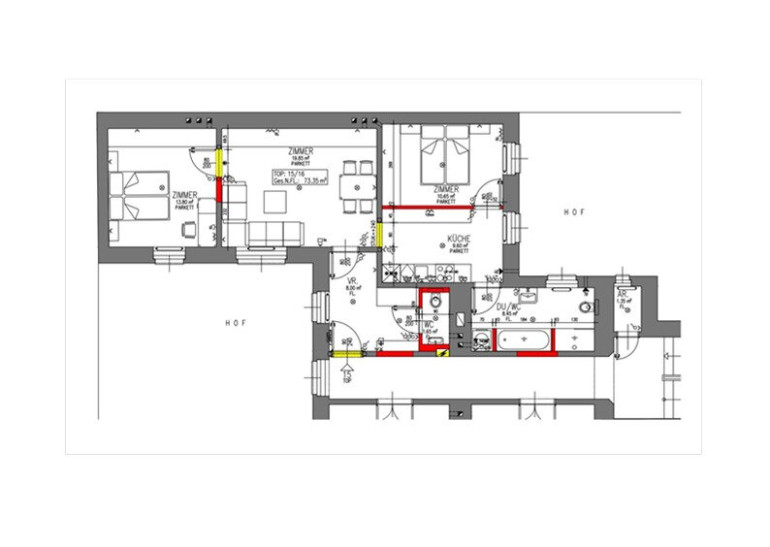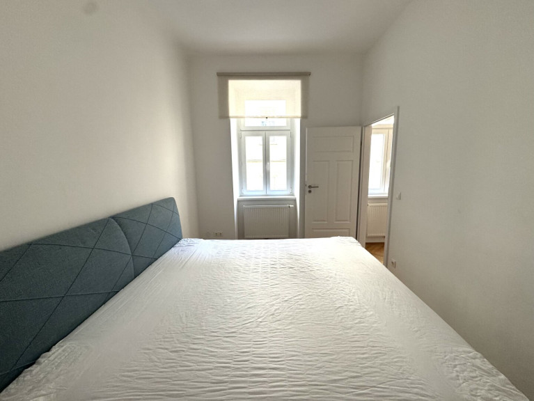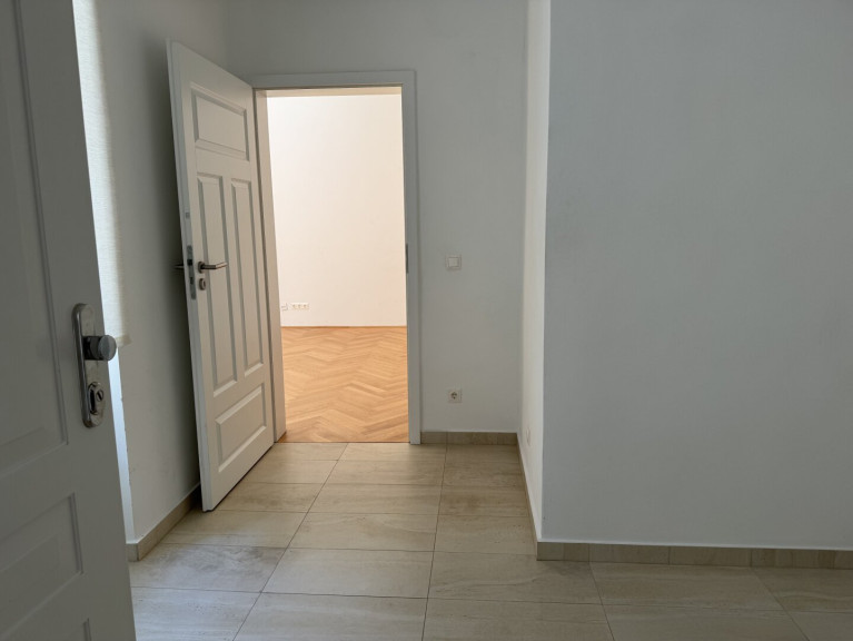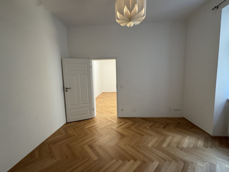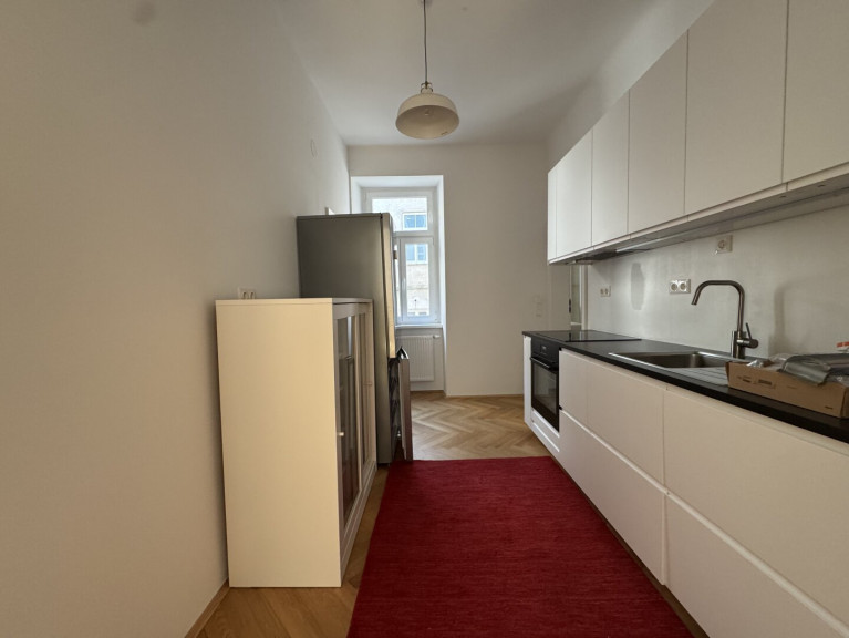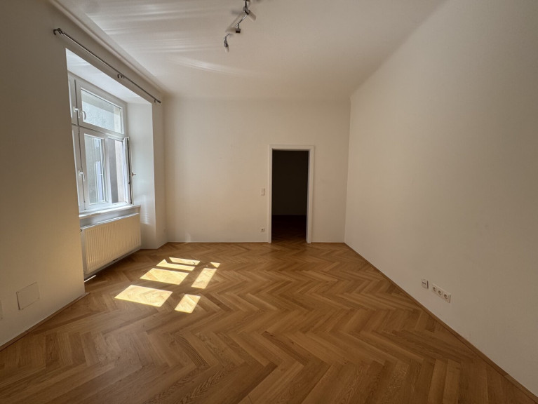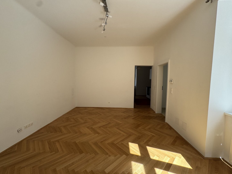 Besonders hervorzuheben ist die Hofruhelage: Sämtliche Wohnräume, ebenso wie das Badezimmer verfügen über neuwertige, zweifach verglaste Fenster, welche allesamt in die Innenhöfe des Hauses blicken und somit eine helle und angenehme Wohnatmosphäre schaffen. Hochwertiger Fischgrätparkettboden, helle Oberflächen und eine klare Linienführung unterstreichen den wertigen Gesamteindruck. Die Küche ist vollständig ausgestattet und funktional in den Wohnbereich integriert, wodurch sie sowohl im Alltag als auch beim Empfang von Gästen überzeugt. Das Badezimmer bietet mit Dusche und Badewanne ein Komfortmerkmal, das in dieser Wohnungsgröße nicht selbstverständlich ist. Zusätzlich zum Wohnraum steht ein direkt an die Wohnung angrenzender Abstellraum zur Verfügung.