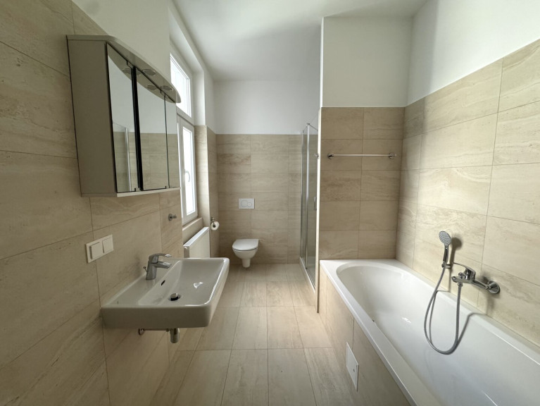 Parkett, Einbauküche, Bad mit Fenster, Badewanne, Dusche