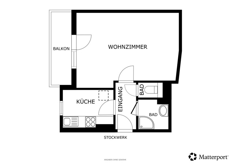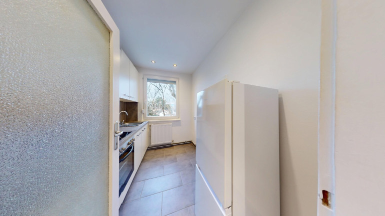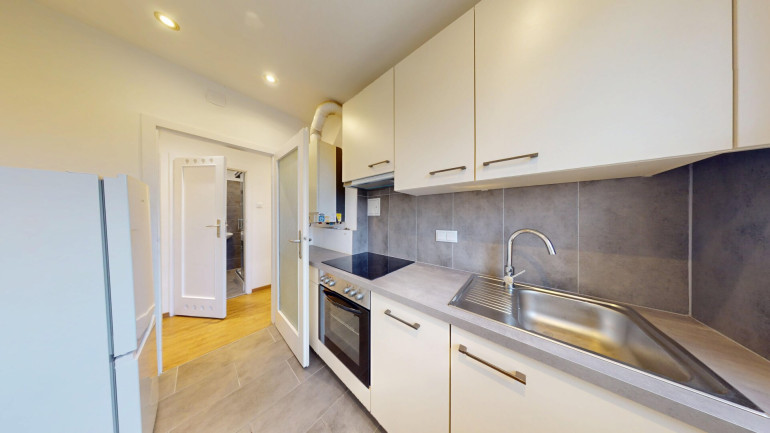 Effizient und kostensparend - Ideale Raumnutzung mit perfektem Grundriss - Wohnraum mit Zugang zu einer schönen Loggia mit Fernblick ins Grüne, separate Küche mit allen elektrischen Geräten, separate Toilette, Bad mit Dusche, Waschmaschinenanschluß und Handtuchtrockner, Vorraum aus dem alle Räume zentral begehbar sind.