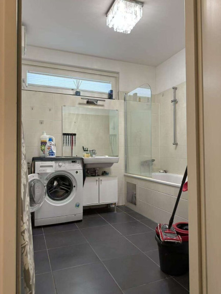 Das Badezimmer ist mit Badewanne, Doppelwaschbecken und Waschmaschinenanschluss ausgestattet. Die Toilette befindet sich unmittelbar neben dem Badezimmer. Weiters verfügt diese Wohnung über einen Abstellraum.