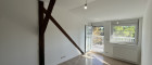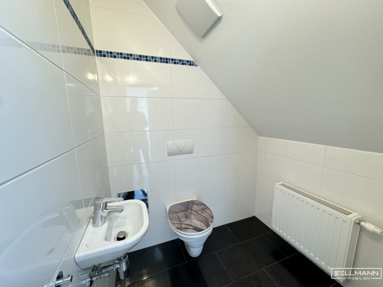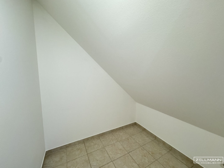 Von hier gelangen Sie auf die großzügige Terrasse mit herrlichem Blick ins Grüne – perfekt, um zu entspannen oder gemütliche Stunden im Freien zu genießen. Dachschrägenfenster auf der gegenüberliegenden Seite sorgen zusätzlich für viel Tageslicht und ein luftiges Wohngefühl. Ein praktischer Abstellraum bietet zusätzlichen Stauraum.