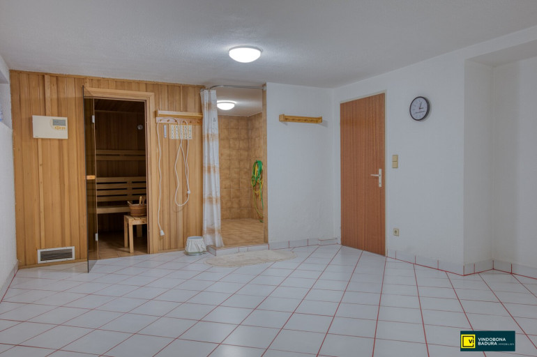 Parkett, Fliesen, Gas, Fußbodenheizung, Einbauküche, Bad mit Fenster, Dusche, Kabel/Satelliten-TV, Garage, Parkplatz, Alarmanlage, Sauna, Wasch/Trockenraum
