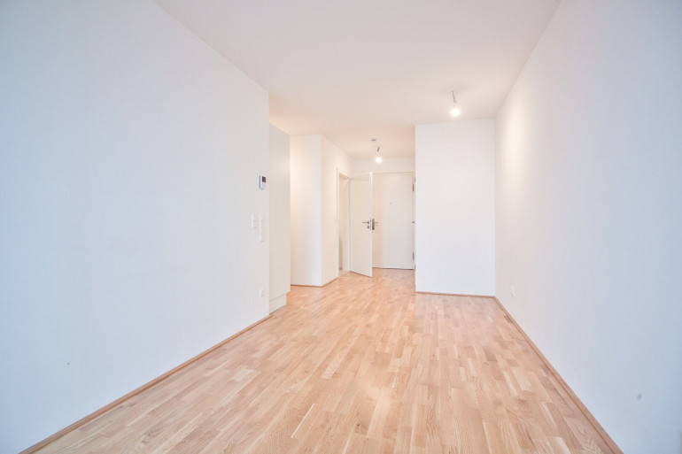 Die Wohnung befindet sich im 2. Liftstock eines modernen Wohnhauses aus dem Jahr 2021. Der Vorraum mit paktischem Abstellraum bietet ausreichend Platz zum Ankommen und für eine Garderobe. Rechter Hand befindet sich ein Badezimmer mit Dusche, Waschtisch, Handtuchheizkörper, WC und Waschmaschinenanschluss.