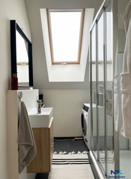 Die Wohnung gliedert sich in eine helle Wohnküche, zwei separat begehbare Zimmer sowie ein Badezimmer mit Dusche und extra WC.