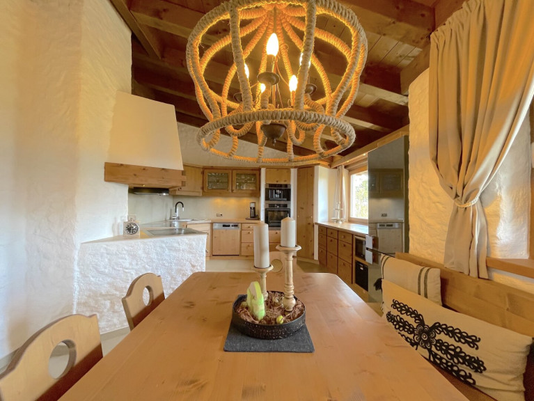 Gas, Heizofen, Kamin, Zentralheizung, Einbauküche, Wohnküche / offene Küche, Südbalkon, Dusche, Badewanne, Kabel/Satelliten-TV, Garage, Parkplatz, Wasch/Trockenraum