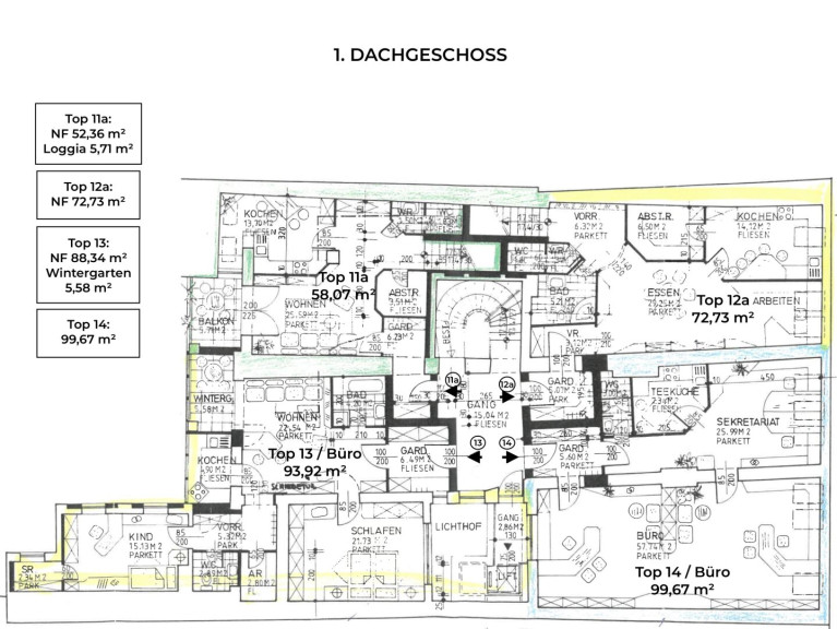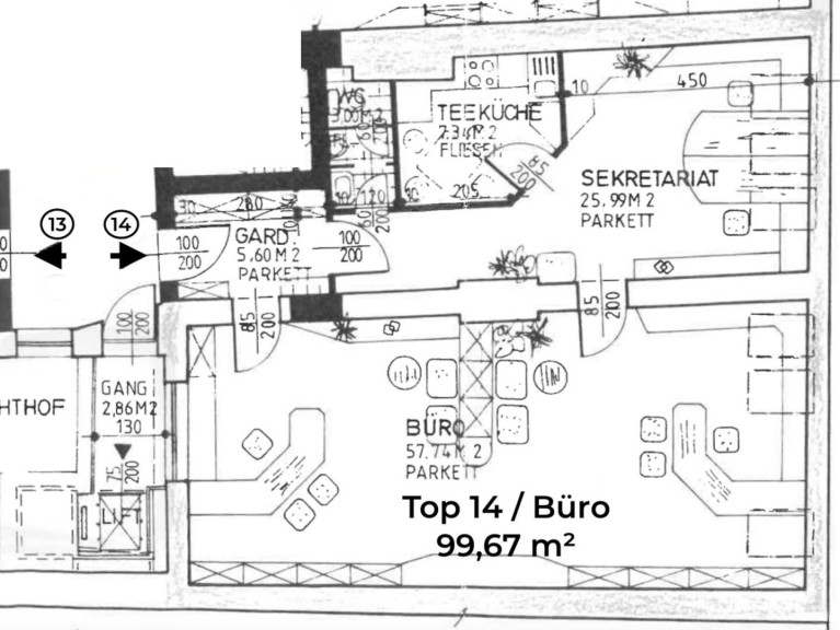 Büro TOP 14: GNF 99,67 m² - aktuelle monatliche Nettomiete € 1.186,04