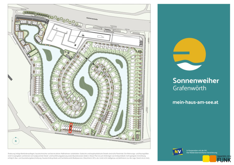 Sich den Traum vom Haus am See erfüllen und 365 Tage Urlaubsfeeling genießen. Das ist möglich im Sonnenweiher Grafenwörth, ca. 30 Fahrminuten von der Stadtgrenze Wiens entfernt, im Herzen der Region Wagram. Ein nachhaltiges, gut durchdachtes Gesamtkonzept, erstklassige Architektur, hochwertige Ausstattung und viel Grünraum fördern das besondere Lebensgefühl am Sonnenweiher. Die Verkehrsanbindung Richtung Wien und Krems (S5, Stockerauer Schnellstraße) sowie nach St. Pölten (S33) ist ausgezeichnet. In der Gemeinde Grafenwörth gibt es ausreichend Einkaufsmöglichkeiten für Güter des täglichen Bedarfs, Kinderbetreuungseinrichtungen und Schulen. In diesem wunderbaren, regionalen Umfeld eingebettet, entstehen an einem mäanderförmig angelegten, ca. 36.000 m² großen See in mehreren Bauabschnitten insges. 170 Wohnimmobilien der Sonderklasse in Form von Einfamilien-, Doppel- u. Reihenhäusern im Eigentum.
