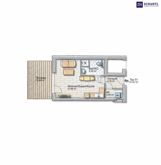 - Terrasse mit 13,90m² in SW-Ausrichtung