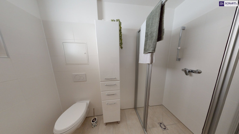 - Badezimmer mit Dusche, WC und Waschmaschinenanschluss 5,35m²