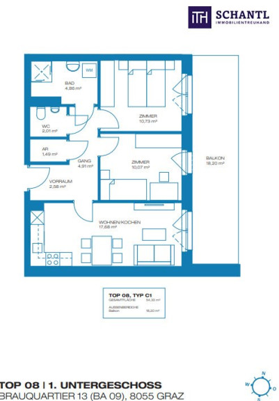 - Wohnfläche: 54,33 m² – ideal für Singles, Paare oder kleine Familien.