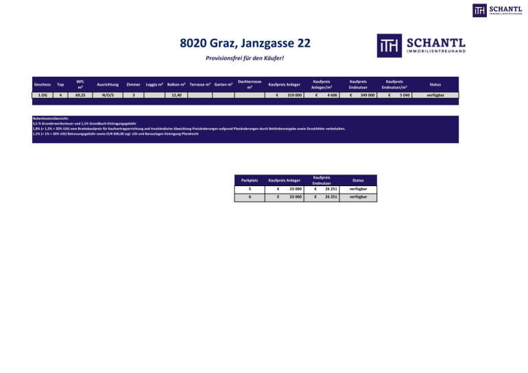 - KP netto des Tiefgaragenplatz € 23.000,00 für Anleger
