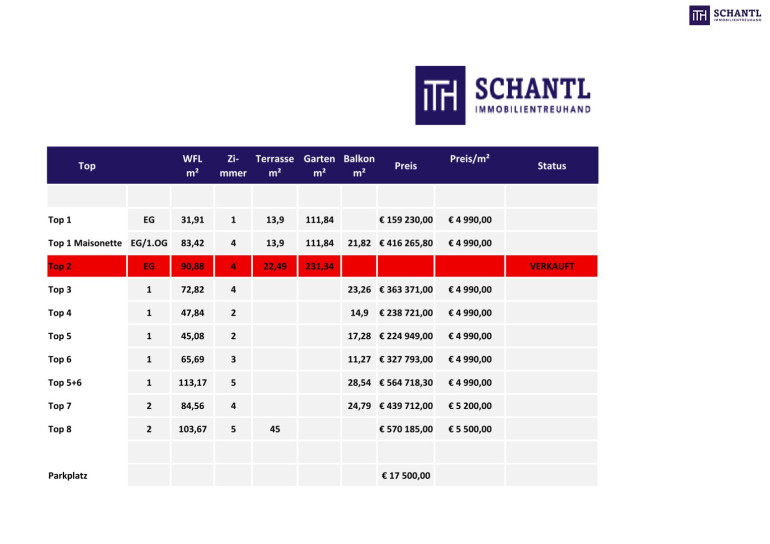 KP der Top 5 brutto € 214.900,00 BELAGSFERTIG, OHNE, Innentüren, Parkett, Fliesen, Mal/Spachtelarbeiten, Sanitärgegenstände/Armaturen/Duschwand (der Nettopreis beträgt - 9%)