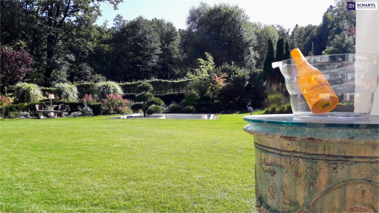 1.500 m² Parkgarten, sorgfältig gestaltet wie ein kleines Naturkunstwerk. Jeder Blick aus dem Haus öffnet sich in dieses grüne Refugium, vollkommen uneinsichtig und einzigartig – ein Ort, an dem man sofort durchatmet.