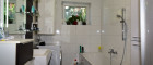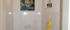 - helles Badezimmer mit Fenster, Dusche, Badewanne & Waschmaschinenanschluss