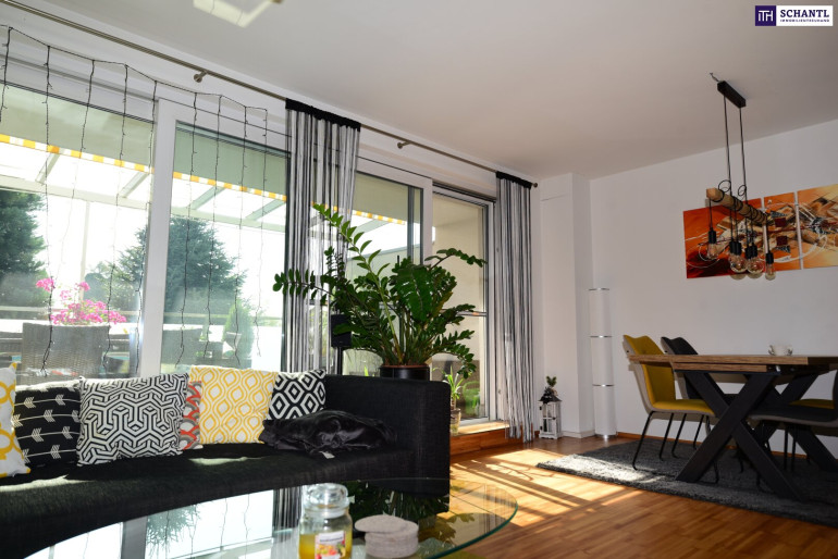 ein Highlight der Wohnung ist die großzügige Terrasse, mit ungefähr 25 m² sie bietet genug Platz für gemütliche Abende im Freien, BBQs mit Freunden oder entspannte Stunden mit Blick ins Grüne, der ungestörte, idyllische Ausblick auf die umliegende Natur ist eine wahre Oase der Ruhe