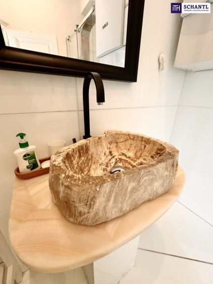 Designbäder mit Walk-in-Duschen, freistehenden Badewannen und hochwertigen Armaturen, hochwertiges Naturstein-Waschbecken im SPA-Bereich