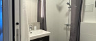 Modernes Badezimmer mit Fußbodenheizung, Dusche, Waschbecken und WC
