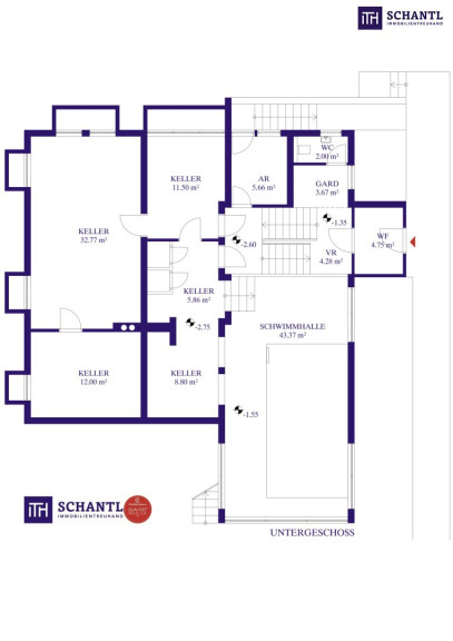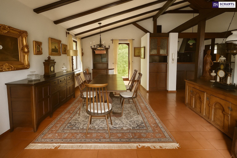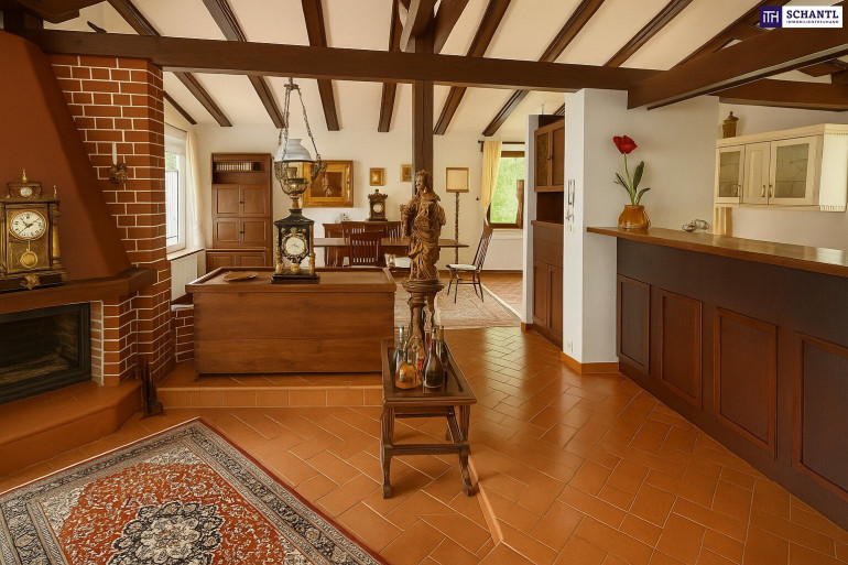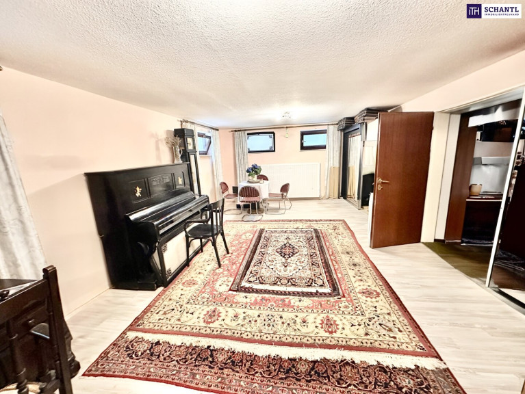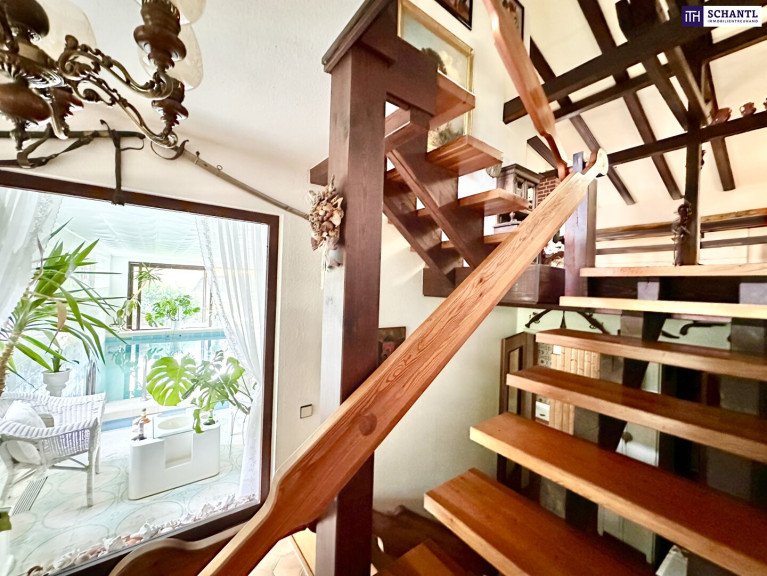 Die Villa bietet mit großem Wohn-Essbereich, offenem Dachstuhl, Kaminecke und in den Wohnbereich integrierter Küche eine einzigartige Wohlfühlatmosphäre. Mit ihren drei Schlafzimmern und einen sehr großen bewohnbaren Keller eignet sich diese Immobilie perfekt für eine Familie mit Kindern, Pärchen oder Einzelpersonen. Ein großer Wellnessbereich mit Indoorpool und Sauna lädt zum Entspannen ein. Von der südseitigen Terrasse und dem Garten blickt man in den Pötzleinsdorfer Schlosspark und genießt die Ruhe der umgebenden Natur.