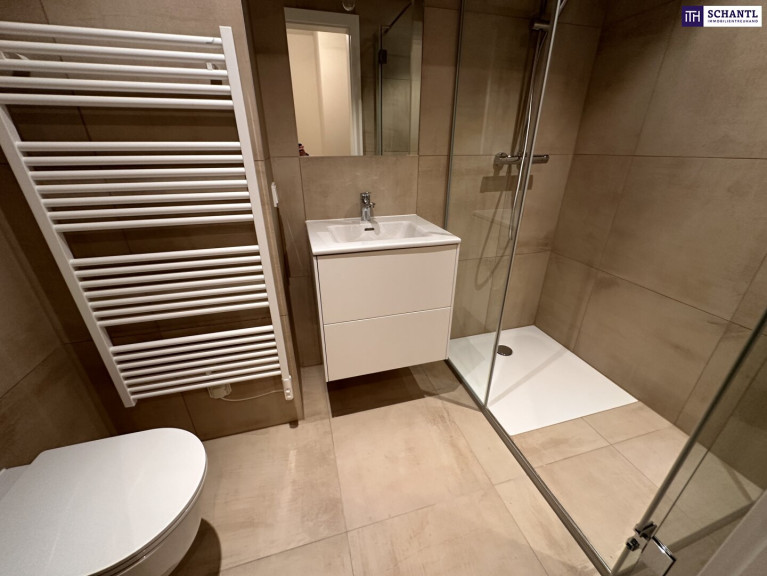 Auch innen überzeugt die Wohnung auf ganzer Linie: Eichendielenparkett, Smart-Home-Vorbereitung, Fußbodenheizung und Deckenkühlung sorgen für höchsten Komfort und zeitlose Eleganz.