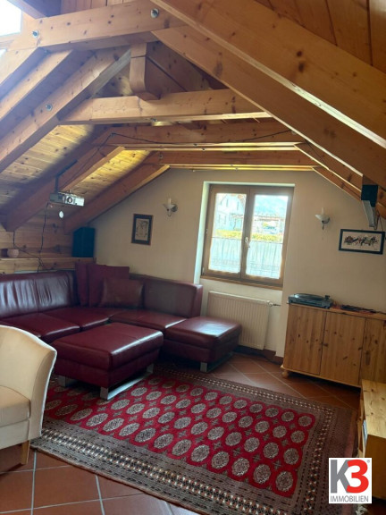Im Obergeschoss beeindruckt eine wunderschöne offene Holz-Galerie, die als weiteres Wohnzimmer dient mit Holzofen und Kuschelzone. Auch gibt es dort noch 2 weitere Schlafzimmer sowie ein Badezimmer mit Wanne und WC und eine kleine Loggia. Von dort erreicht man über eine 2. Treppe noch ein Atelier, das zur Zeit als Büro und Lounge dient.