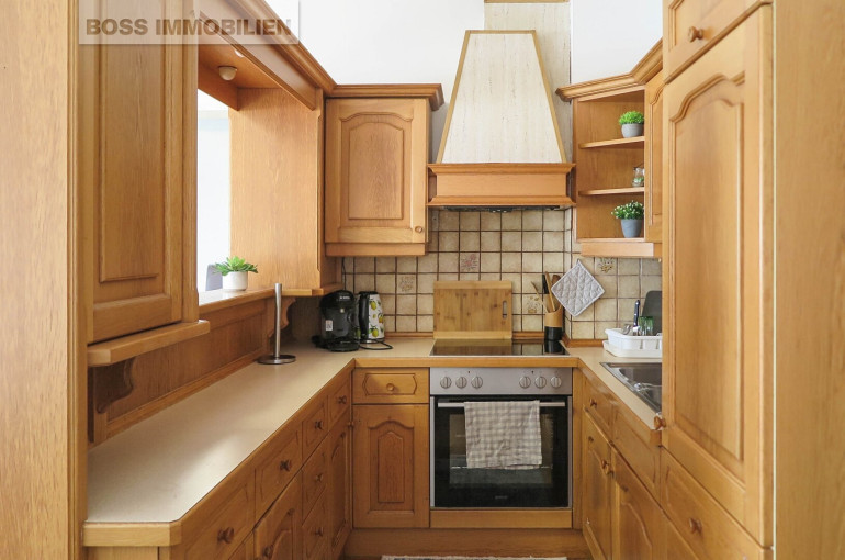 Der helle Wohnbereich mit integriertem Essplatz und maßgeschneiderter Küche bietet ausreichend Raum für gesellige Spieleabende mit Freunden ebenso wie für entspannte Stunden auf der Couch. Die Küche sowie die Badmöbel sind bereits Teil der Wohnung und fügen sich harmonisch in das Gesamtbild ein.