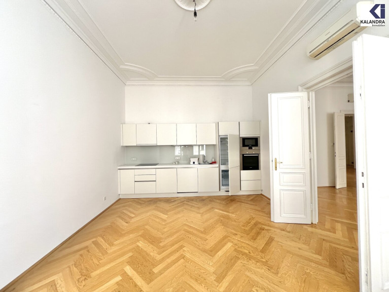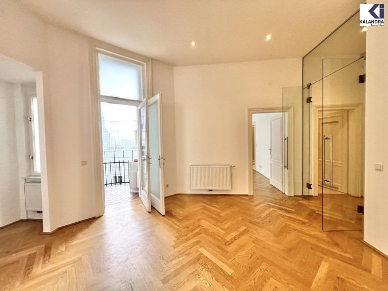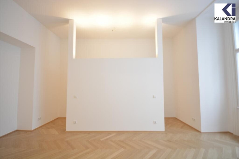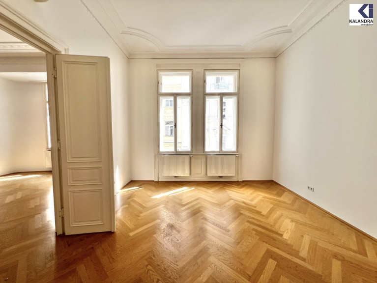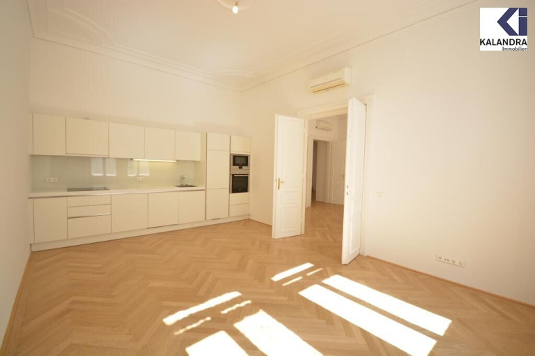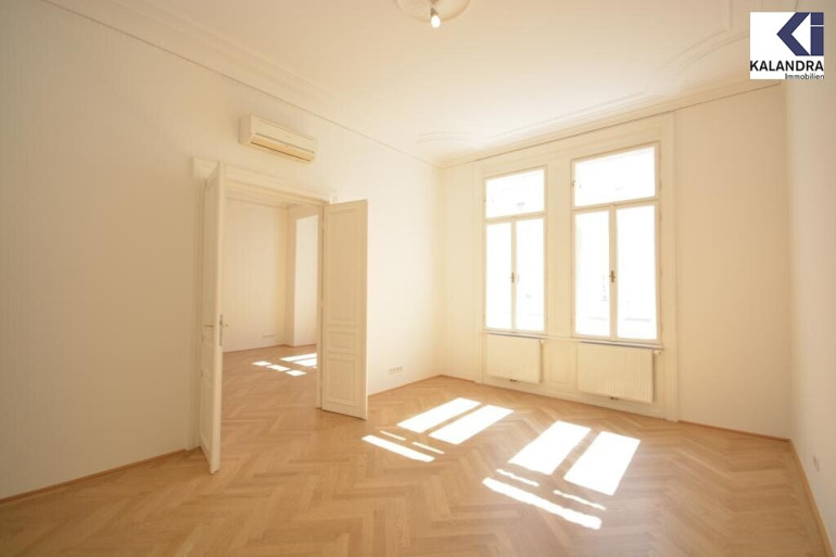 großzügiger Vorraum, Wohzimmer, anschließendes Zimmer mit offener Wohnküche, zwei Schlafzimmer, ein Badezimmer mit Wanne, Doppelwaschbecken und WC, ein Duschbad, Gäste-WC, ein Abstellraum, begehbare Garderobe, hofseitiger Klopfbalkon.