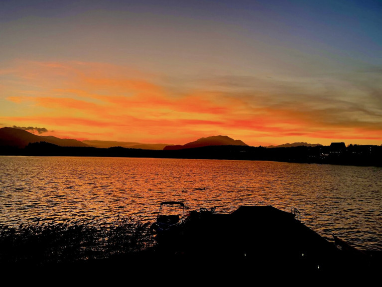 - Top Aussicht auf den See und Sonnenuntergang, direkt vom Wohnzimmer und der Terrasse aus