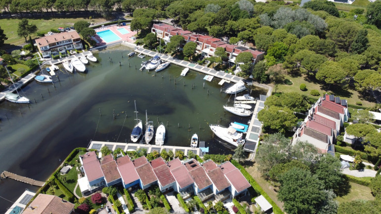 In der traumhaften Lagunenlandschaft von Aprilia Marittima, nur wenige Minuten von den Stränden und der lebhaften Promenade von Lignano Sabbiadoro entfernt, befindet sich dieses einzigartige Reihenhaus mit eigener Bootsanlegestelle direkt vor der Haustür – ein wahres Paradies für Wassersportliebhaber und Ruhesuchende.