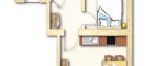 Die 36 m² Wohnfläche teilen sich auf in einen zum Verstauen nutzbaren Vorraum, WC, Duschbad, Schlafzimmer mit Balkon und einen hellen Koch-, Ess-, Wohnraum.