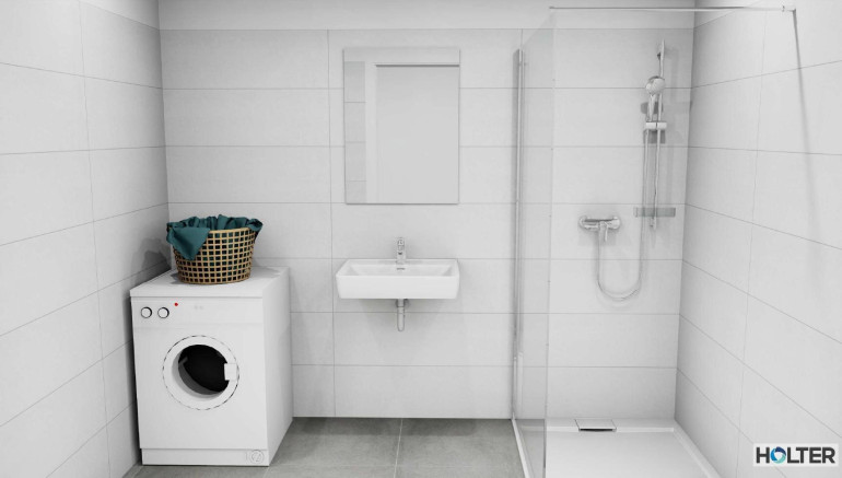 Das separate WC und das Badezimmer sind großzügig gehalten. Jetzt kann noch zwischen einer Badewanne oder einer Dusche gewählt werden. Die Trennwand zwischen Bad und WC kann bei Bedarf entfernt werden.