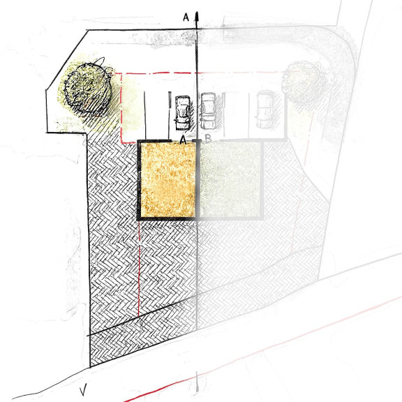 Das Grundstück ist Teil einer insgesamt doppelt so großen Parzelle und entspricht laut Bebauungsstudie dem Haus Orange (orange markiert). Gut möglich ist eine platzsparende, energieeffiziente und harmonische Doppelhausbebauung mit dem angrenzenden Grundstück. Auf der kaufgegenständlichen Liegenschaft ist eine Wohnnutzfläche bis zu ca. 165 m² und großzügigen Außenbereichen möglich. Der Planungsvorschlag wurde von der Gemeinde bereits positiv beurteilt.