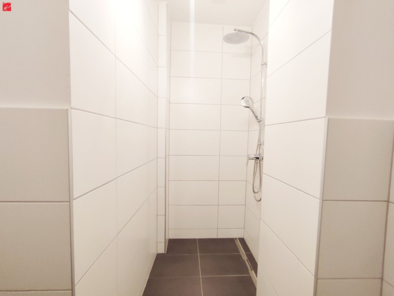 Fliesen, Laminatboden, Gas, Fernwärme, Wohnküche / offene Küche, Einbauküche, Dusche, Wasch/Trockenraum