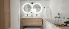Hochwertiges Badezimmer mit Tageslicht – Genießen Sie entspannte Wellnessmomente in einem modern ausgestatteten Bad mit Fenster, Dusche und edler Keramik sowie Doppelwaschbecken.