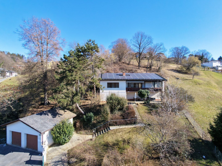 Vier helle Zimmer mit traumhaften Fernblick, die Küche inkl. Abstellraum, das Hauptbadezimmer, das Gäste-WC sowie die große Loggia mit Südwestausrichtung sind im Obergeschoss situiert. Weitere drei Zimmer befinden sich im Untergeschoss, welches zusätzlich über drei Keller- und Technikräume verfügt. Büro, Home-Office oder Hobby finden somit genug Platz in Ihrem neuen Eigenheim. Weiters befindet sich auf dieser Ebene eine schöne und überdachten Terrasse im Eingangsbereich sowie der davorliegende traumhafte Garten.