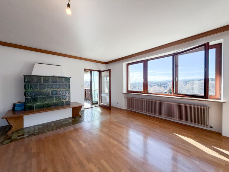 Als absolutes Highlight und Alleinstellungsmerkmal muss der unverbaubare Panoramablick erwähnt werden. Sie werden die Sonnenuntergänge mit Ihrer Familie beim gemeinsamen Abendessen auf der rd. 27m² großen Loggia genießen. Ein offener Kamin und der gemütliche Ofen im großen Wohnzimmer garantieren in Kombination mit dem traumhaften Ausblick ein Wohngefühl der Extraklasse.