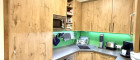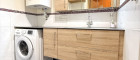 - moderne, voll ausgestattete Küche mit offener Durchreiche zum Wohnzimmer
