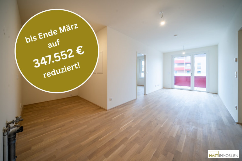 *Während der Aktion werden die Verkaufspreise um 6,5 % reduziert. Dies entspricht den durchschnittlichen Nebenkosten beim provisionsfreien Wohnungskauf (1,9 % Vertrags-errichtung, 3,5 % Grunderwerbsteuer, 1,1 % Eintragungsgebühr). Die auf Basis des um 6,5% reduzierten Kaufpreises berechneten Nebenkosten sind über den Treuhänder zu begleichen. Eine mögliche Gebührenbefreiung gem. § 25a iVm § 25b Gerichtsgebührengesetz kann zusätzlich in Anspruch genommen werden.