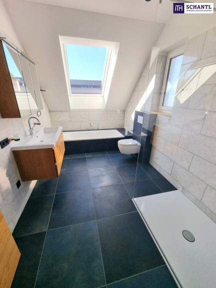 Ihr neue Wohnung wird Sie restlos begeistern und teilt sich auf der 1.Ebene in einen geräumigen Vorraum mit Platz für eine Garderobe, ein separates WC mit Fenster und Waschbecken, ein stylisches und großes Badezimmer mit Badewanne, Walk-In Dusche, 2.WC und Fenster, 2 getrennt begehbare, gemütliche Schlafzimmer sowie das Herzstück der Wohnung - ein lichtdurchflutetes Wohn-Esszimmer mit einer hochwertigen und voll ausgestatteten Einbauküche und Zugang zur Traumterrasse.
