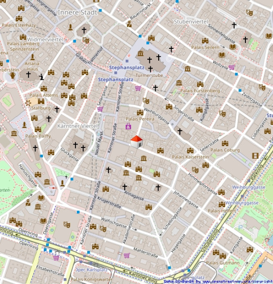 Die Rauhensteingasse 7 befindet sich im 1. Wiener Gemeindebezirk, im Herzen von Wien. Die Lage zeichnet sich durch ihre Nähe zu zahlreichen kulturellen, historischen und gastronomischen Highlights aus, die das Stadtzentrum prägen. Der berühmte Stephansplatz mit dem Stephansdom ist nur wenige Gehminuten entfernt und bietet eine ausgezeichnete Anbindung an den öffentlichen Verkehr sowie an die wichtigsten Einkaufsstraßen der Innenstadt. Die Rauhensteingasse selbst ist eine ruhige, aber zentrale Straße, die vor allem durch ihre gepflegten Altbauten und das historische Flair besticht. Sie liegt in unmittelbarer Nähe der Kärntnertorstraße und der Operngasse, zwei prominente Verkehrsachsen des ersten Bezirks. Dadurch ist die Umgebung sowohl gut erreichbar als auch von einer charmanten Mischung aus Wohn- und Geschäftsgebäuden geprägt. Die Infrastruktur in der Umgebung ist hervorragend: Öffentliche Verkehrsmittel wie die U-Bahn-Linien U1 und U3 sowie zahlreiche Bus- und Straßenbahnlinien sind in kurzer Distanz erreichbar. Die Gegend bietet außerdem eine Vielzahl von Einkaufsmöglichkeiten, Restaurants, Cafés und kulturellen Einrichtungen, darunter die Wiener Staatsoper, das Albertina Museum und das Theater an der Wien. Die Lage ist somit sowohl für Geschäftsreisende als auch für Kulturinteressierte und Stadtbewohner gleichermaßen attraktiv.